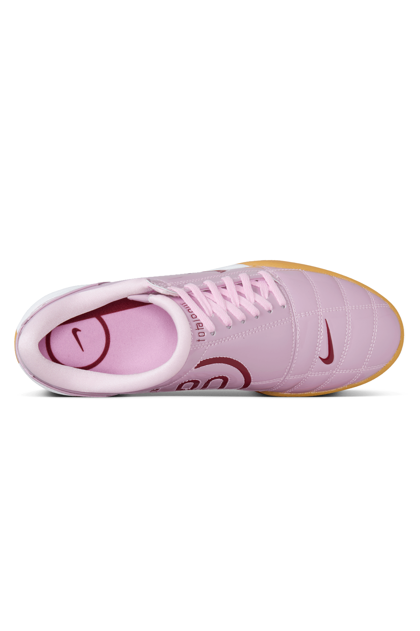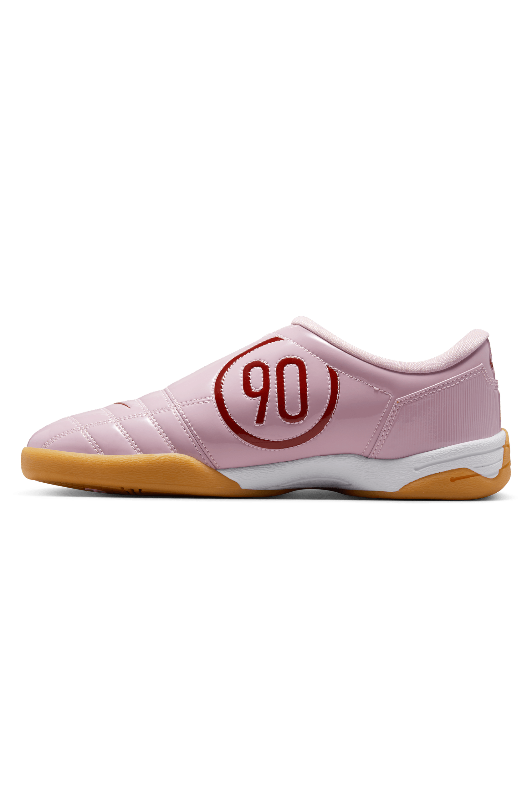 L'imminente Total 90 "Pink Foam" reimmagina l'iconica silhouette da indoor dei primi anni 2000 attraverso una lente moderna. Realizzata in vernice rosa lucida, l'edizione da donna offre una rivisitazione in chiave fashion di un classico della performance. I lacci e la fodera tonali mantengono il look coeso, mentre gli Swooshes rossi a contrasto sul profilo e il marchio Total 90 sul tallone aggiungono un tocco sportivo e deciso. Sotto il piede, un'intersuola bianca pulita è abbinata a una classica suola in gomma, rimanendo fedele alle radici della silhouette.